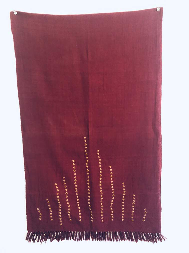 #C30 - Shawl, red, white circles at end, 34"x21"