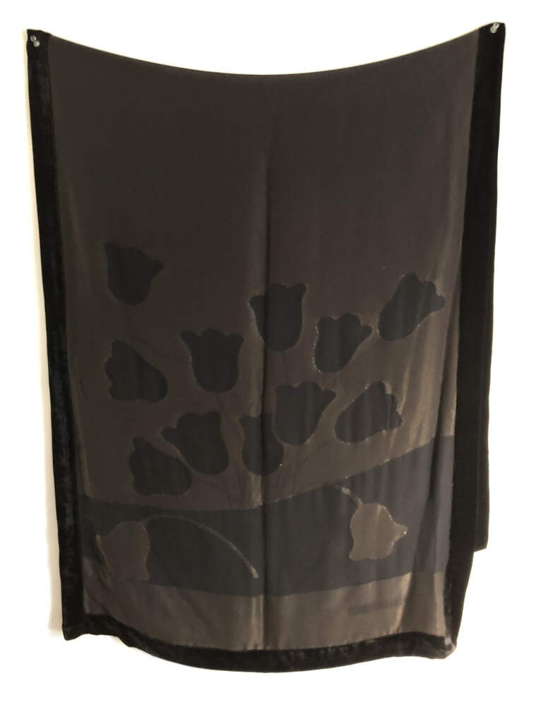 #C46 - Shawl, black, gray, tulip, velvet, 39"x78"