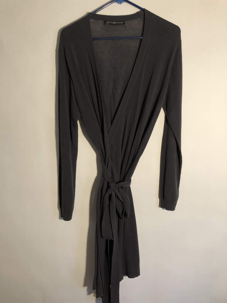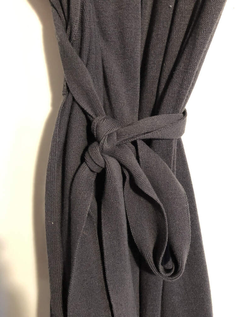 #C72 - Sweater wrap with tie charcoal gray