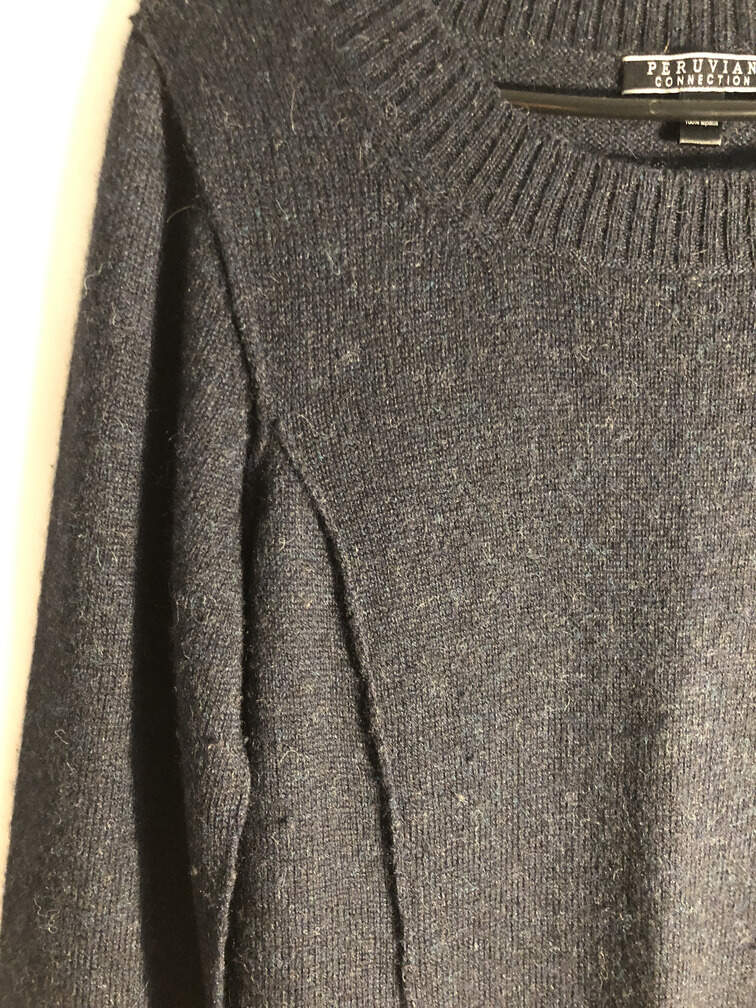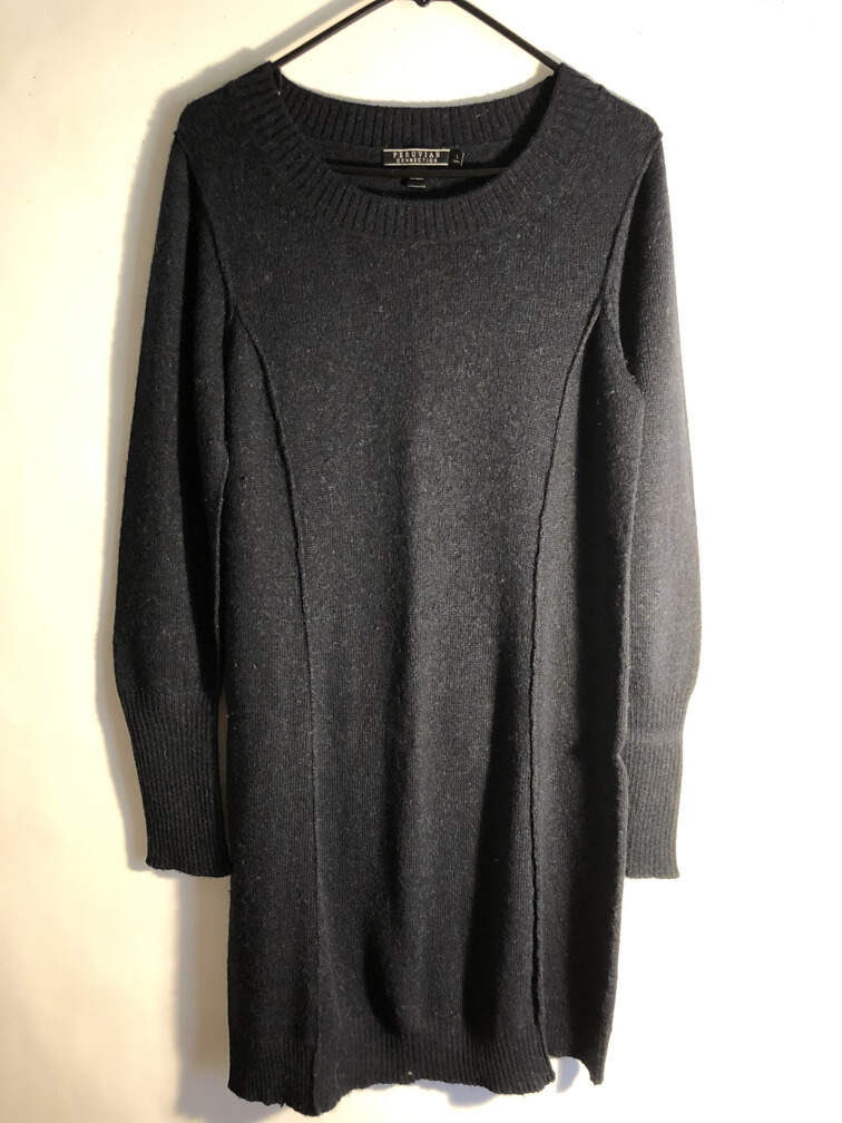 #C92 - Sweater long navy blue knit, pullover boat neck