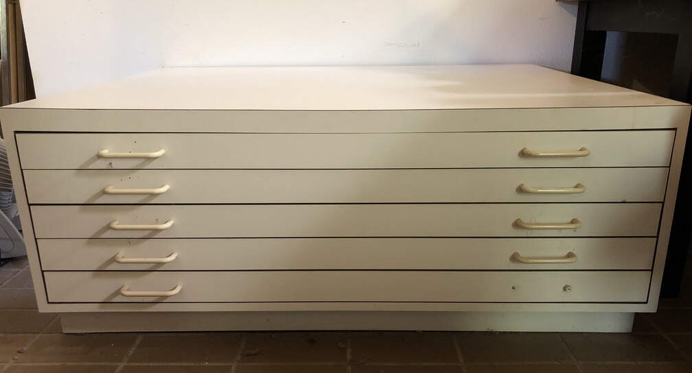 #F4 - Five Flat Drawers, white, for drawings, blueprints, 36"x47"x19"
