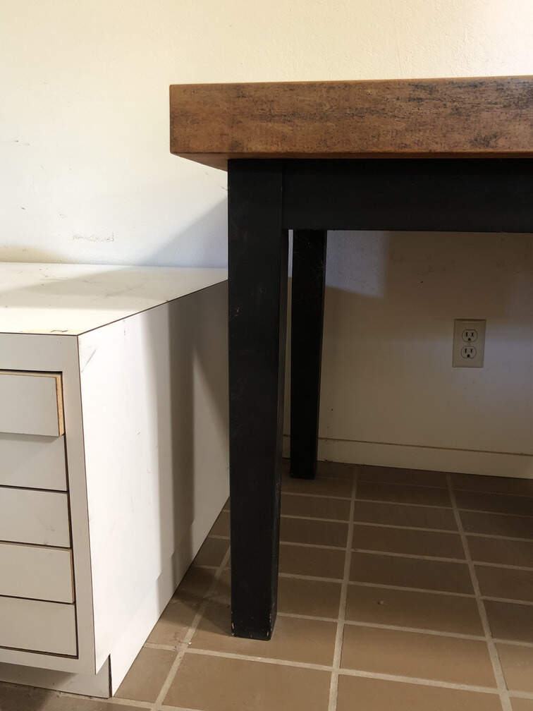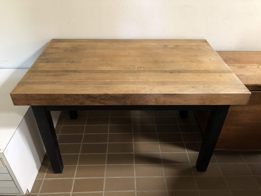 #F5 - Solid Table, thick wooden top, 4 sturdy wooden legs, top 30"x48"x3", 29" tall