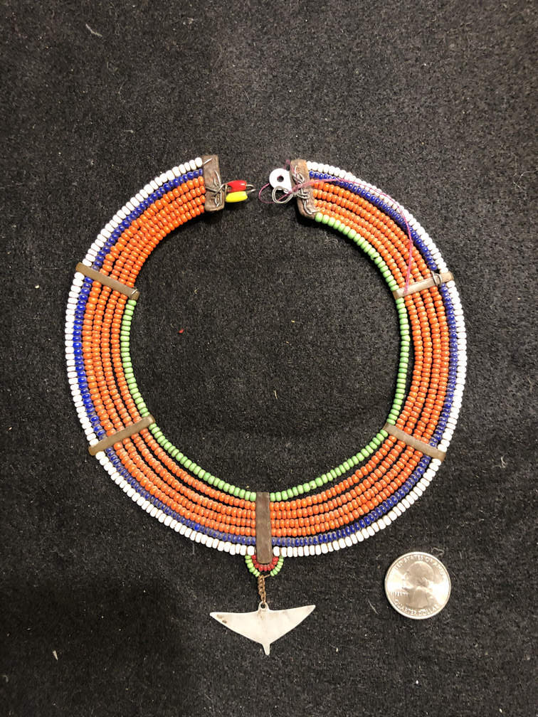 #J112 - Necklace, beaded, colorful, "choker" - For skinny neck, Masai
