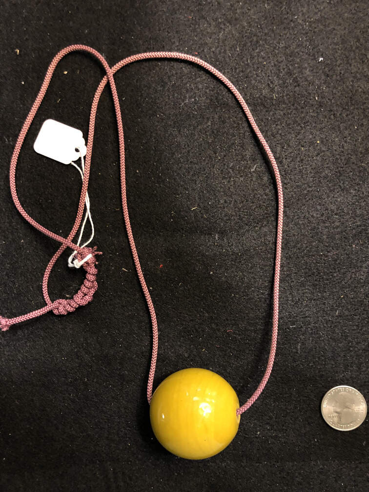 #J143 - Pendant, yellow spherical ceramic, pink cord