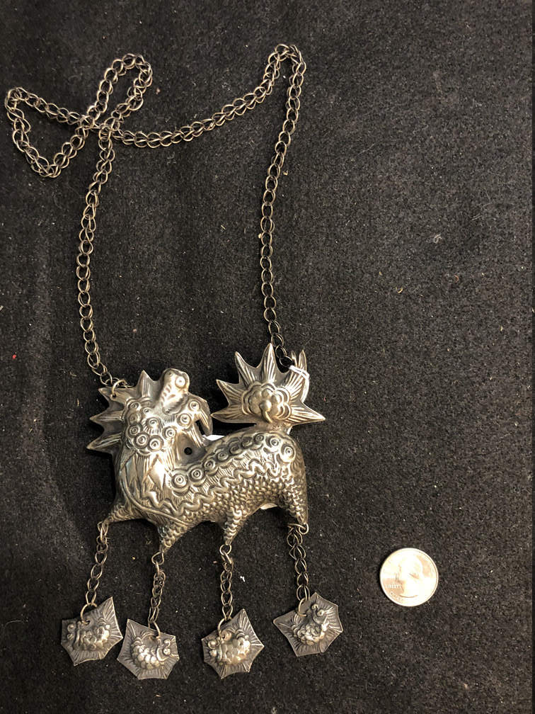 #J157 - Necklace, silver, large hollow dragon