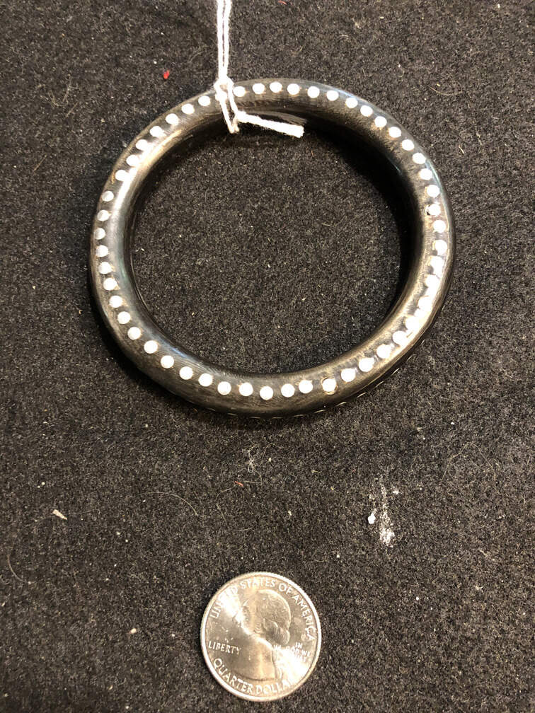 #J206 - Bracelet, plastic, many silver circular inlays