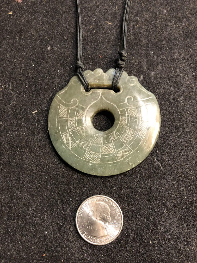 #J234 - Pendant, engraved dark green jade