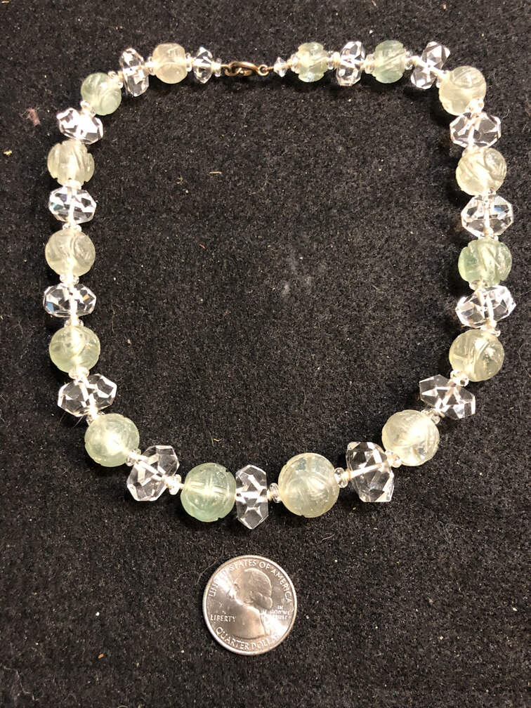 #J238 - Necklace, glass beads, light green and clear