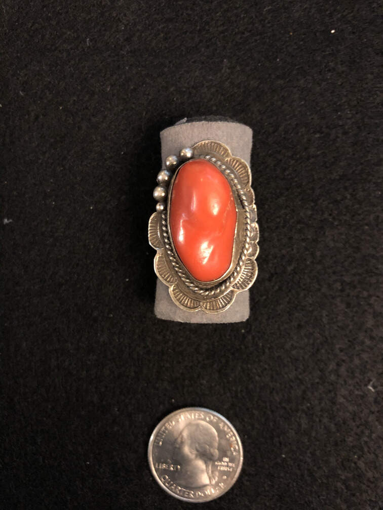 #J24 - Ring, coral, in silver, Navajo, V. Hicks