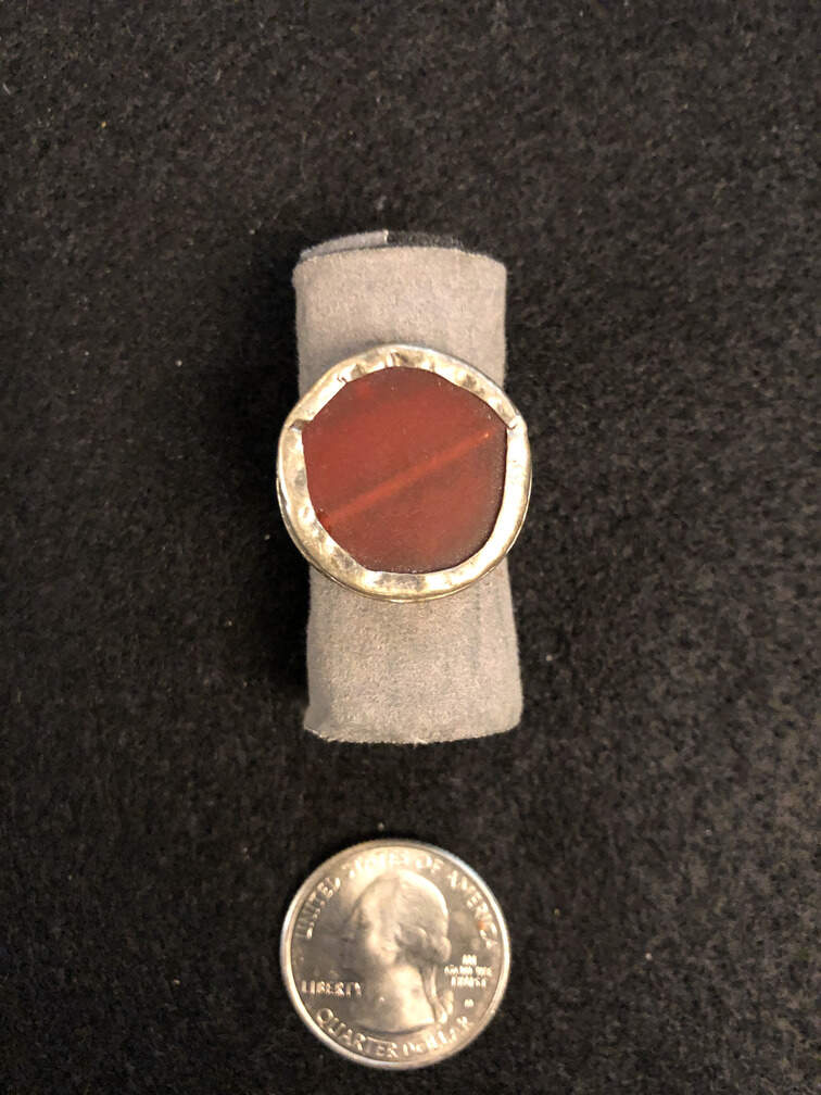 #J25 - Ring, silver, circular carnelian