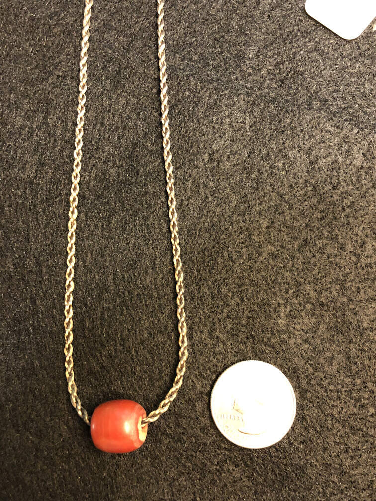 #J250 - Pendant, wooden red bead, woven fiber cord