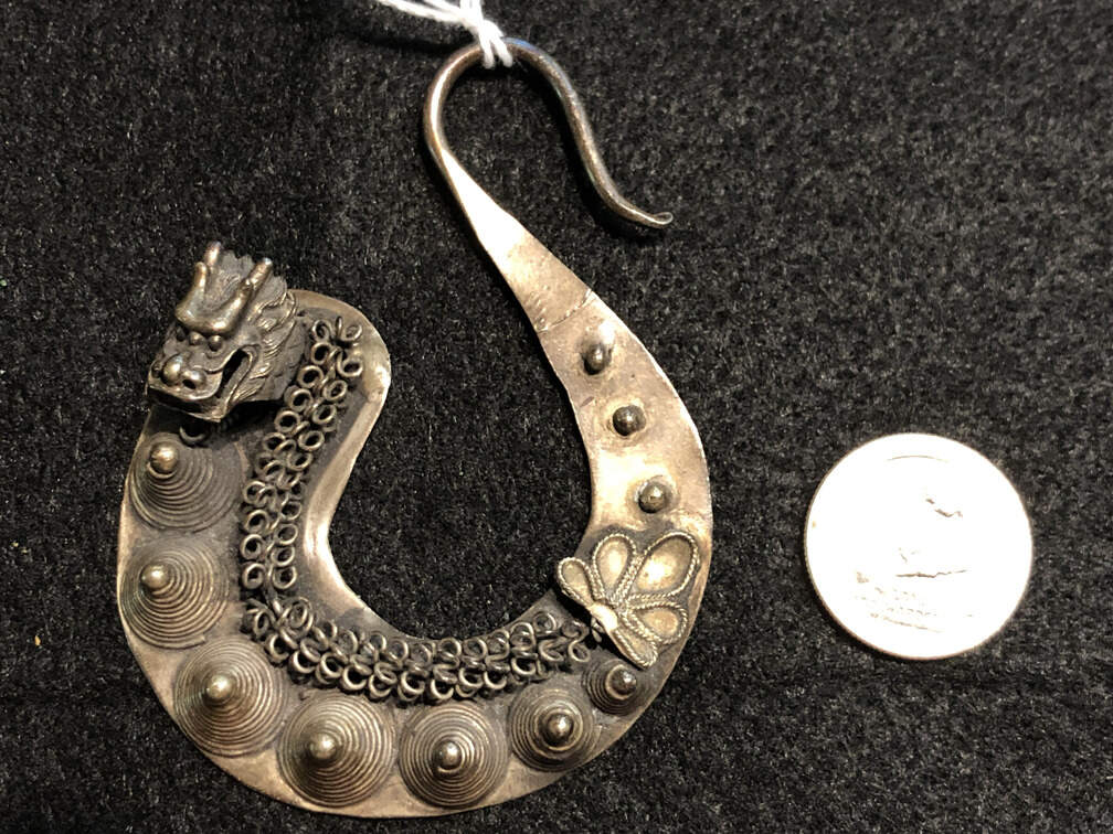 #J265 - Earring, silver, dragon motif, single earring