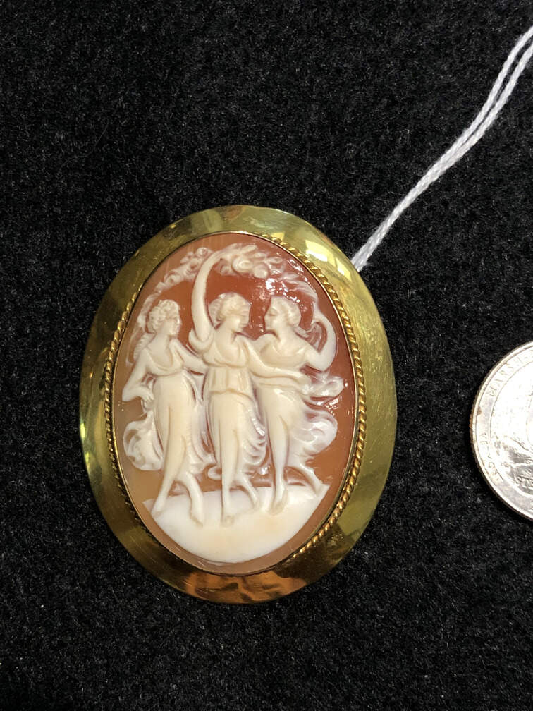 #J268 - Pin, cameo, 3 figures, in gold