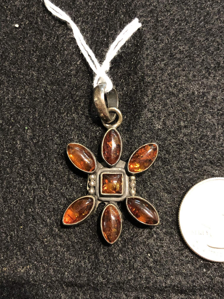 #J274 - Pendant, amber, 6 pointed