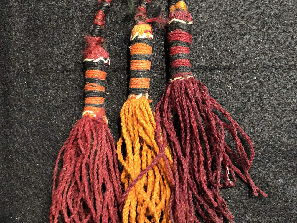 #J282 - Textile wall hanging, woven, orange/red/black, 18" long