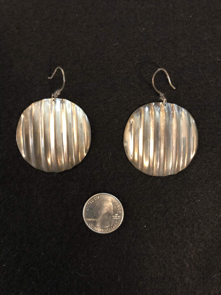 #J3 - Earrings, Circular, silver, ruffled