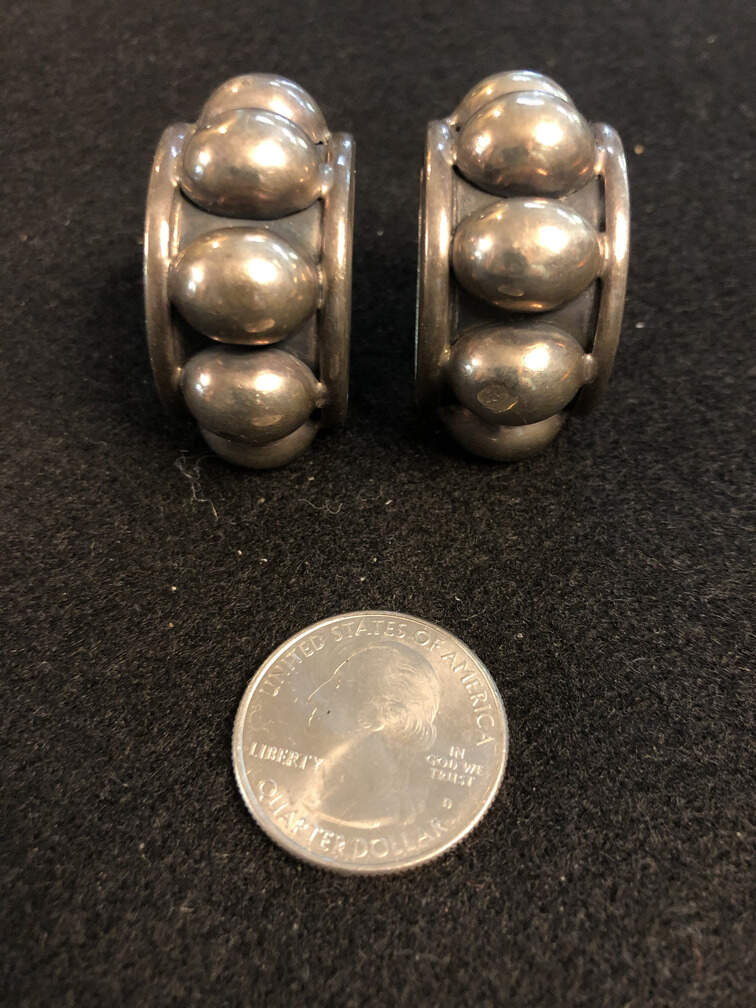 #J43 - Earrings, large heavy, 4 silver beads