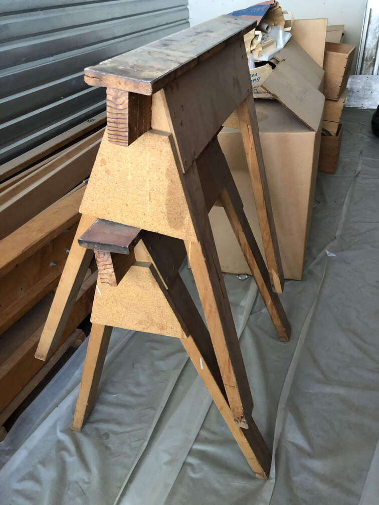 #O19 - Sawhorses, two, wooden - in storage in Woodland