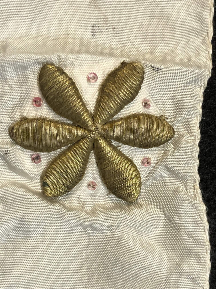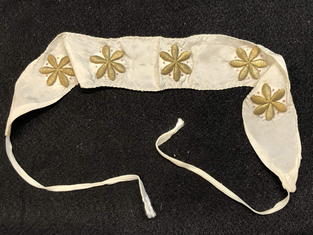 #T51 - White silk headband gold embroidered flowers