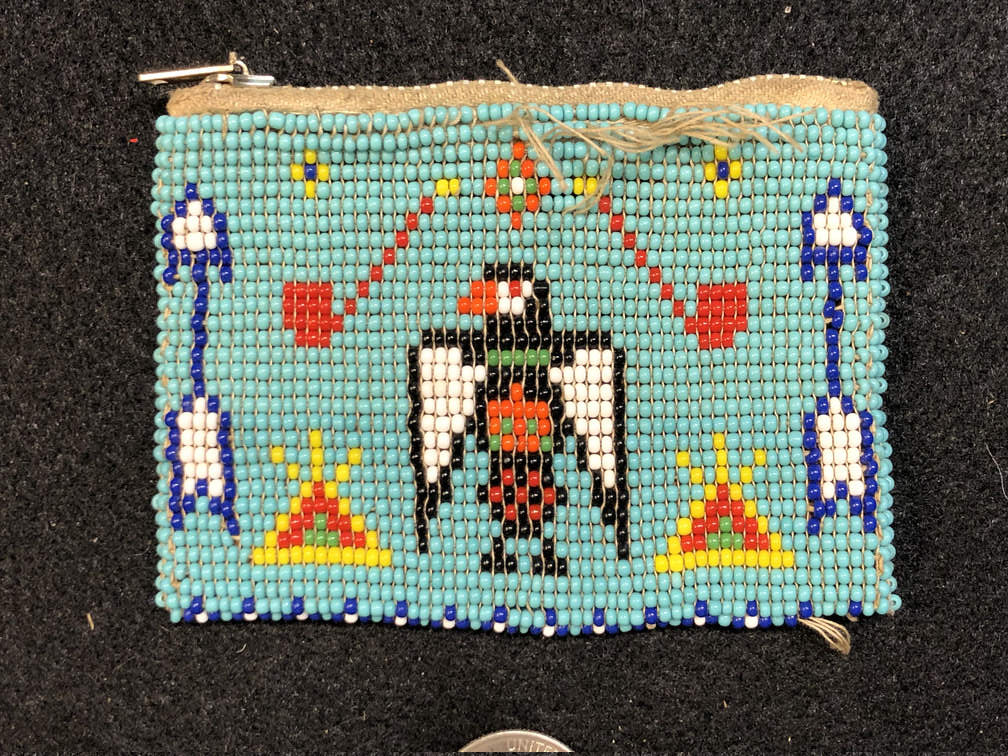 #T73 - Coin purse leather beaded zippered