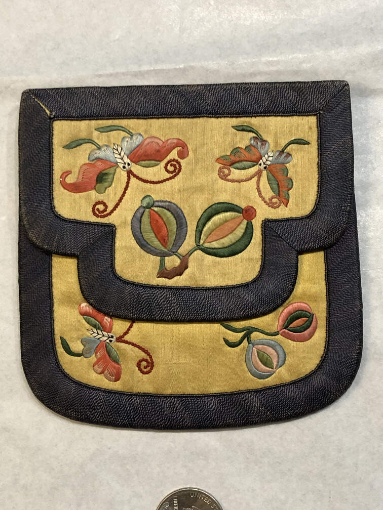 #T94 - Embroidered silk gold purple 3 compartment little purse