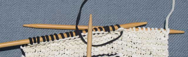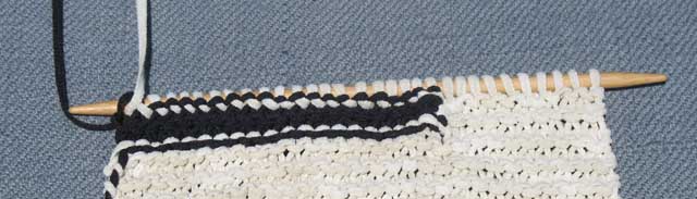 Here is what it looks like after 3 stitches. Note the intertwined black.