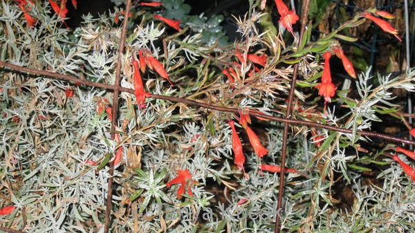 Perennials such as hummingbird fuchsia benefit from being cut back in the winter. Here it is in bloom, last October.