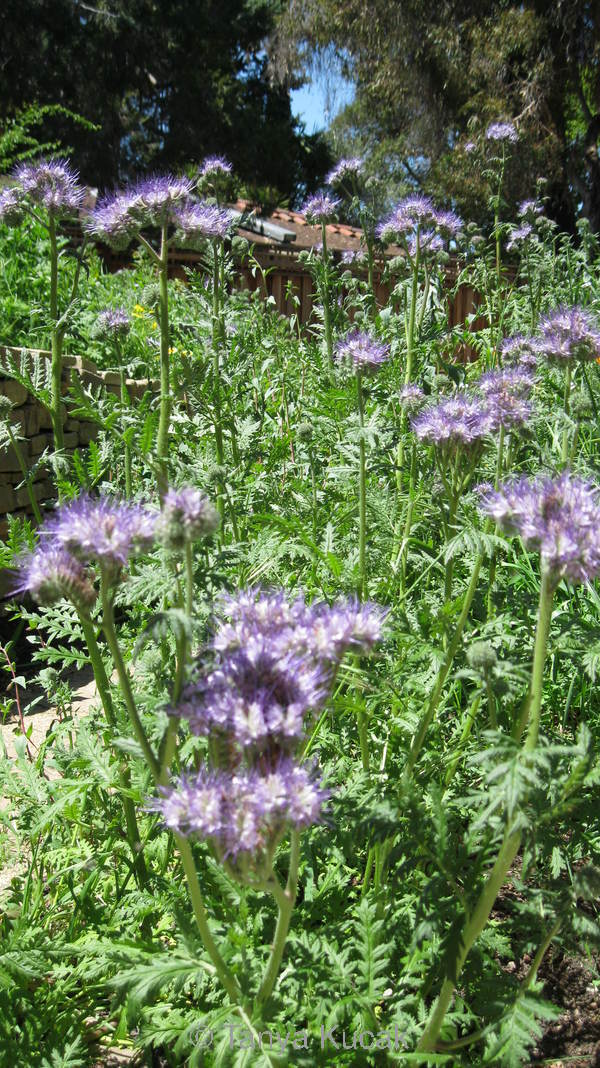 Phacelias towered over the other plants in the wildflower meadow at this Mountain View garden last April. Children delight in creating paths through the meadow and love colorful seasonal wildflowers.