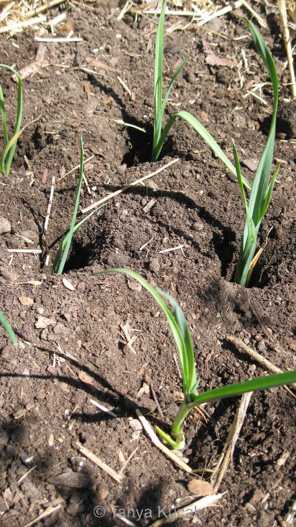 To grow leeks with more of the edible, white part, usually you'd have to mound soil around the plants as they grow, which takes time. But Damrosch offered a way both to plant only once, and to get an extra-long white shank. Instead of planting seedlings at ground level, she uses a metal rod to make a hole 9 inches deep and drops the seedling into the hole. (I've used a crowbar or a piece of rebar.) The whole plant still gets enough light to grow, because the hole is not filled in. By the end of the season, though, the hole will have lightly filled in, and you can harvest a leek with a very long white shank.