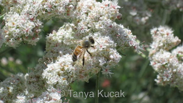Native buckwheats attract numerous pollinators and other beneficial insects, including honeybees. Look closely at the tiny flowers of any native buckwheat, and you may spot tiny beneficial insects.