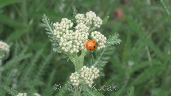 Ladybugs are drawn to yarrow. Two days after I noticed ladybugs on my yarrow plants this spring, all the aphids that had furred the leaves and buds of my kale plants were gone. Ladybug larvae have a voracious appetite for aphids, and it's worth ignoring a large aphid population in the spring so that the beneficial insects can feast.