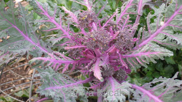Purple Peacock broccoli, a stabilized cross between two kales and a broccoli bred by Frank Morton, is sweet enough to eat raw and makes an eye-catching ornamental plant.