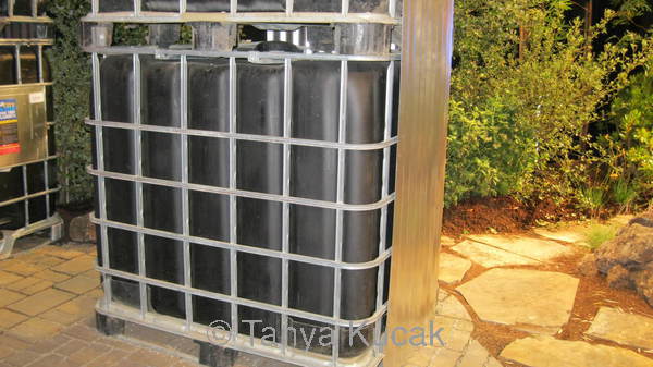 Beneath the permeable pavers in the show garden was a 4500 gallon cistern. Rain falling on the patio, as well as overflow from the roof once the tanks are full, fills the cistern. A tank this size is expensive and requires more space, but it's worth considering as part of a patio or landscape renovation.