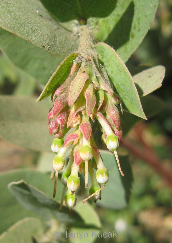 Bigberry manzanita is stunning with red red bark and whitish leaves. When young, the leaf colors change through the year, from yellow-green new growth to gray-blue. Veilleux found one in the wild that's 35 ft. high, but in gardens it stays around 10 ft. high.