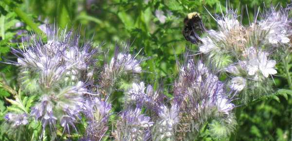 Bees sip nectar and collect blue-colored pollen from tansy phacelia, a native annual typically grown from seed. As many as 21 bee species have been observed in a phacelia patch.