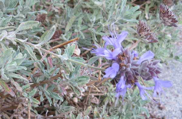 Like several other woody shrubs in the mint family, woolly blue curls does not tolerate much pruning. Simply trim the spent flowers at the tips of the branches.