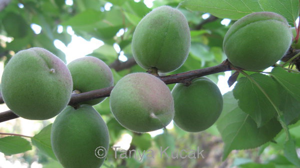 The fruit on this apricot tree is much too prolific for the tree to handle, and growing far too close together. Once the fruit is properly thinned, this branch will sustain 2 or 3 larger, better tasting, healthier apricots.