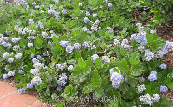 Plant easy-care native groundcovers instead of a lawn to keep weeds down and invite beneficial insects. This low-growing ceanothus has blue flowers in the spring and needs minimal water once established.