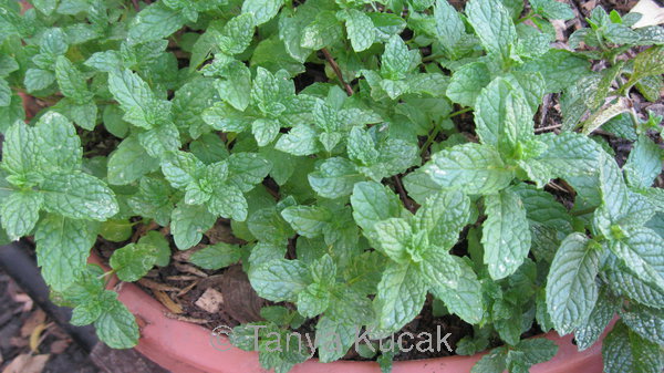 Mint is the perfect herb for a container near your kitchen door, as long as it gets some sun and regular water. Planted in the ground it can be invasive, but in shallow containers it can provide a steady supply of fresh mint all summer.