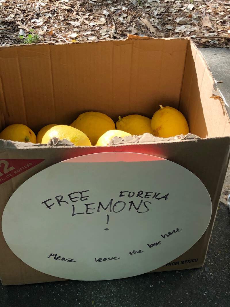 Day by day, I placed the lemons in a cardboard box and put the box by the mailboxes where people pick up their mail each day: