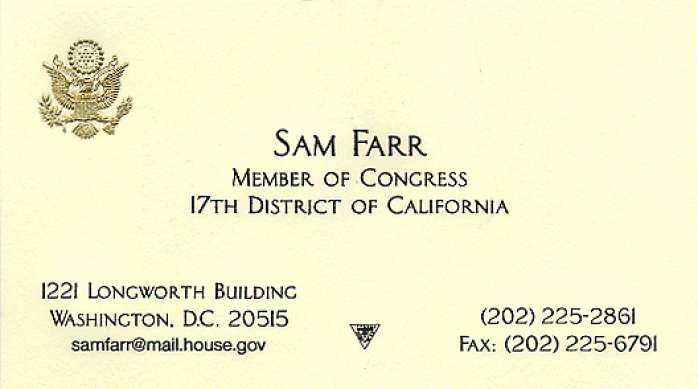 I did not meet Sam Farr but his staff was quite welcoming and warm.
