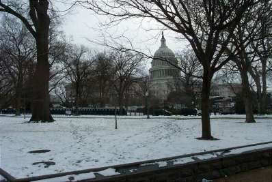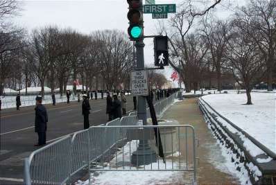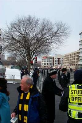 | This is my view of the oath of office ceremony. Can you see Mr Bush? I couldn't. There were, of course, large television screens and a good sound system. | |