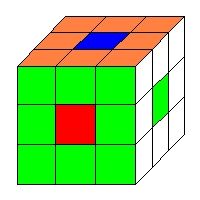 This once-to return-to-home-but-three-to return-to-home-orientation property of the ful cubelet is also shared by each of the other corner cublets except for three of them. These three corner cubelets cycle among themselves in a "twisting three-cycle"-- a three-cycle that returns each of its cubelets to its home position with a +1 twist after three repeats of the (FRBL) process. Thus to return these corner cubelets to their home position and orientation we will have to perform the three repeats three times for a total of 9 repeats. (just to check our calculations you should try 9 successive repetitions of (FRBL) on a cube [36 moves] to see that all 8 of the corner cubelets return to their home positions and orientations.)
