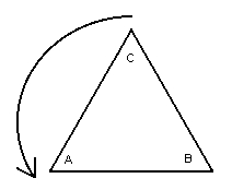 It is a good idea to follow the advice of Maria Montessori and involve many senses in your learning. To this end I advise that you make a paper or cardboard triangle and label its vertices A, B and C. Then draw a similar triangle on a piece of paper. Begin with the triangle in the start position (as shown in the first illustration)and perform the various motions, one after another. Note the final orientation of the triangle (by the distribution of its vertices) after the two motions have been performed (one followed by another). What single motion is this equivalent to?