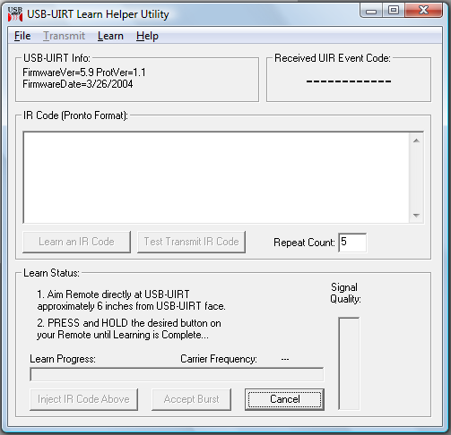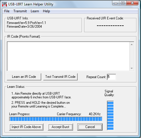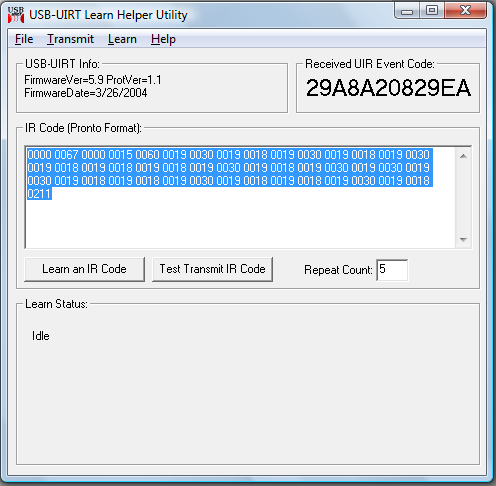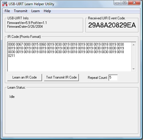 (In case of curiousity … the mouthful of USB-UIRT is an acronym for Universal Serial Bus - Universal Infrared Receiver Transmitter.)