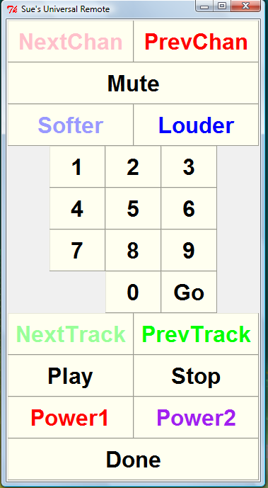 The procedure outlined below will teach Sue Center what infrared signals your devices expect. When you point your remote at the USB-UIRT and press a button the device is in receive mode. You grab the signals so sent and put them in a file. Sue Center reads this file and is thereby enabled to send the appropriate signal and mimic the remote button's press.
