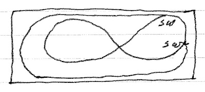 The job I have been doing lately is the present to Jon and Bjorn. A train set with engine, 4 cars and a caboose, on a 4'x8' sheet of plywood. Tracks are set up as follows.