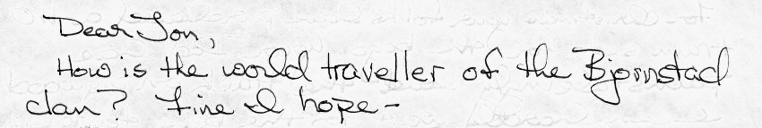How is the world traveller of the Bjornstad clan? Fine, I hope.