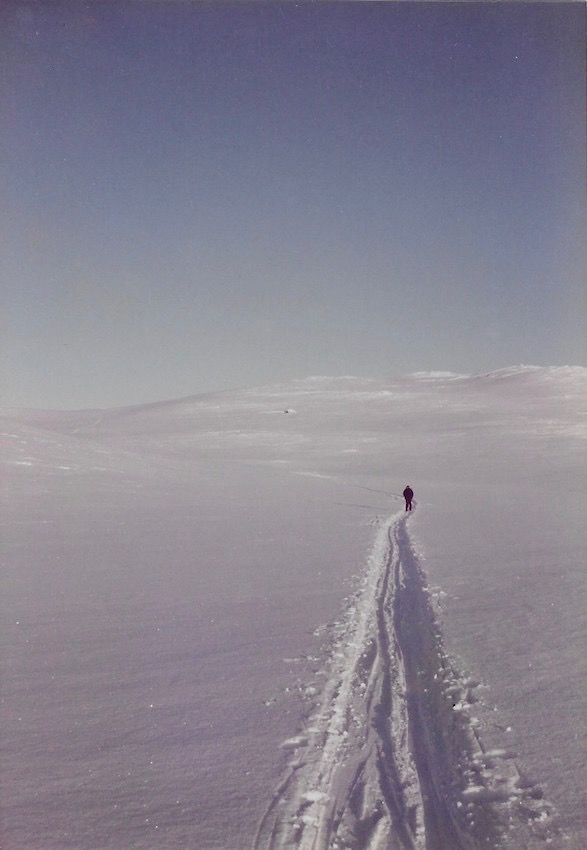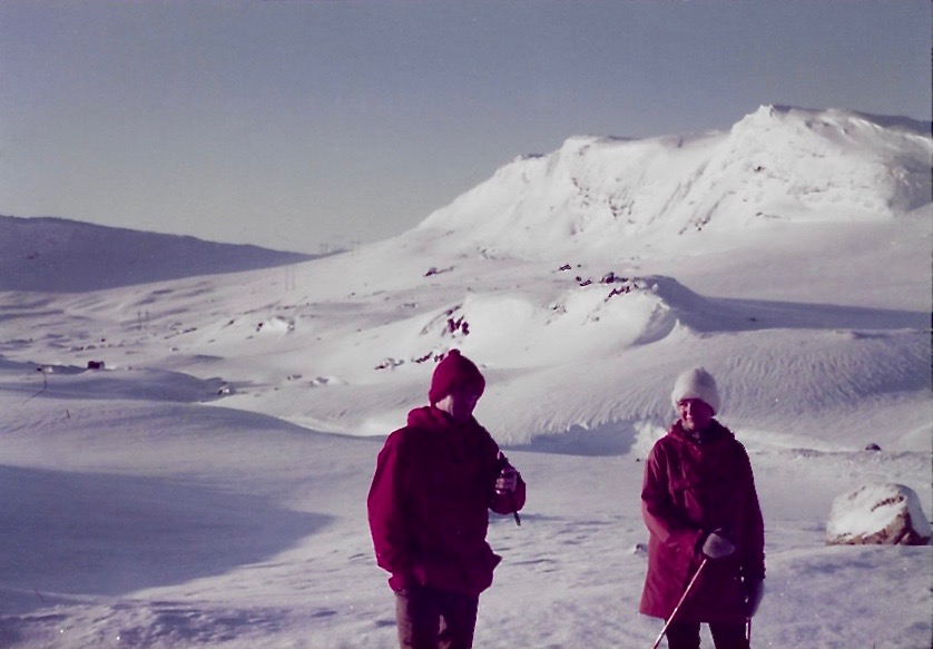 I am at Finse. It is between Oslo and Bergen on the railroad - inaccessible by car. It is the highest (1222 meters) point on the rail line. I was invited here by Olav Sjulsen [OOlAv Shulsen], Jøran's nephew. He and his girlfriend, Eileen, are vacationing here through New Year's day. We came Friday afternoon and the weather for cross country skiing was perfect on Saturday. Clear sky, dry air, about 5 cm of dry snow, and the temperature minus 18°C. Let's see 9/5(-18)+32 ~= 0°F. It was cold but it didn't feel cold. I knew it was cold because of the ice in my beard. I borrowed boots, poles, skis from Olav, socks and pants from Rolf. The route we took is marked on the enclosed map which was also a placemat. It was about right for me. Actually, maybe a little beyond my limit. We were out about 4 or 5 hours. I was the slowest one in the whole party. Towards the end I kept falling down and slipping and that slowed me down. It was exhilarating, exhausting, exciting. The mountain scenes of snow forever were fantastic. I took several pictures. My knees will recover in a few weeks.