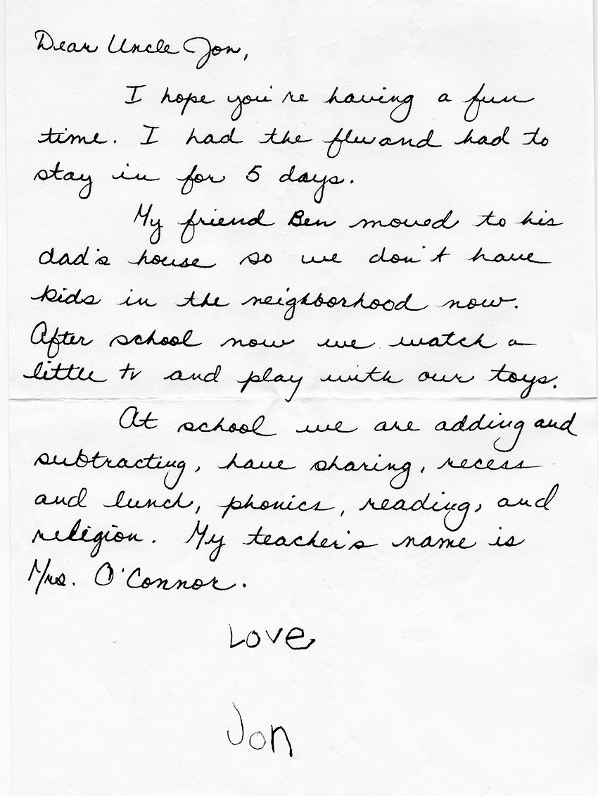 I guess that's about all the news. As soon as Jon is back to health, we'll all be well. And, we're anxious to have you home. Have great travels with Alan.